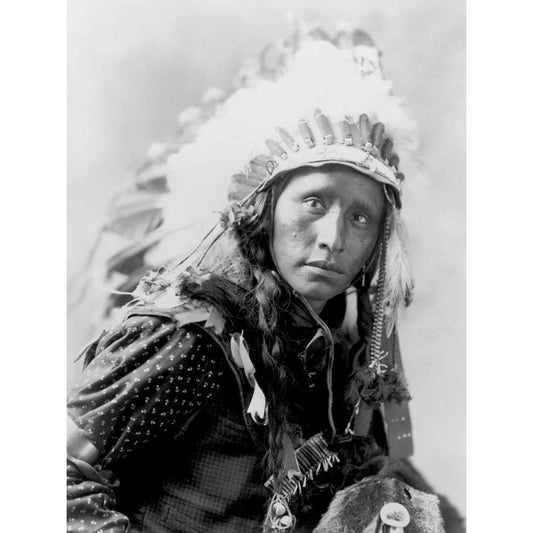 Indian wearing White War Bonnet- 1900 Black Modern Wood Framed Art Print by Anonymous