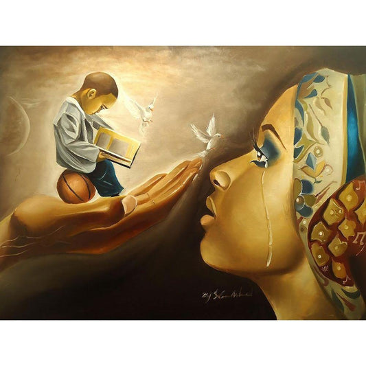 Mother Behold Your Child Black Modern Wood Framed Art Print by Muhammad, Salaam