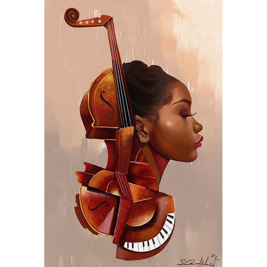 Mahogany Strings Black Modern Wood Framed Art Print by Muhammad, Salaam
