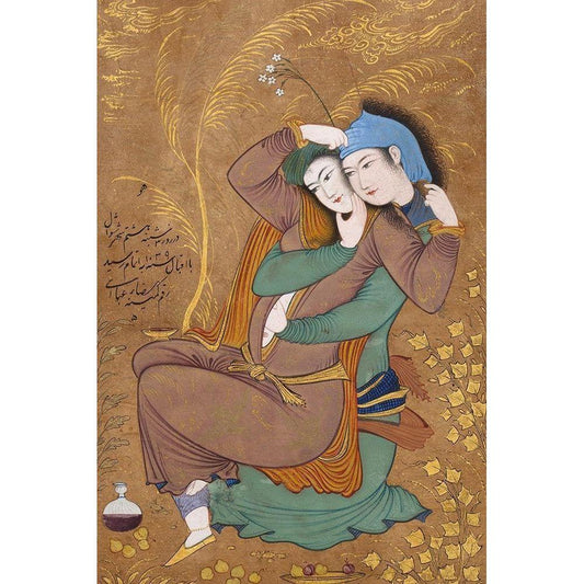 The Lovers Black Modern Wood Framed Art Print by Abbasi, Riza-yi