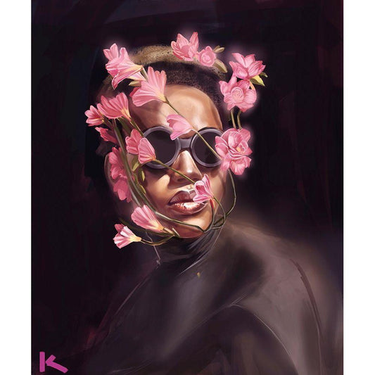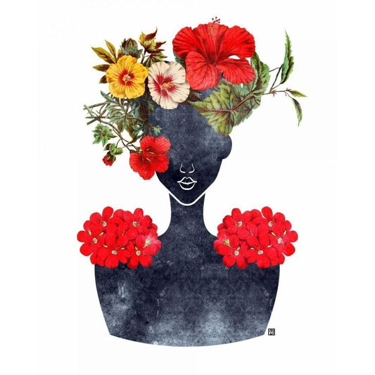 Floral Black Modern Wood Framed Art Print by Adeleke, Adekunle