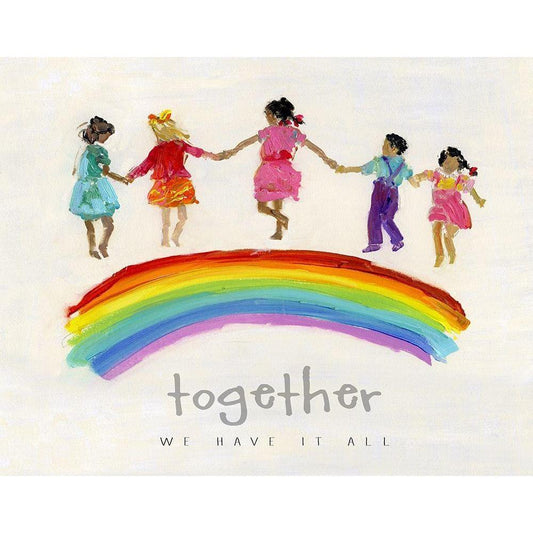 Rainbow Kids Together Black Modern Wood Framed Art Print by Swatland, Sally