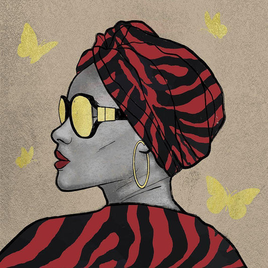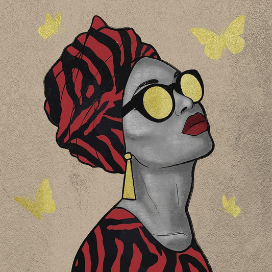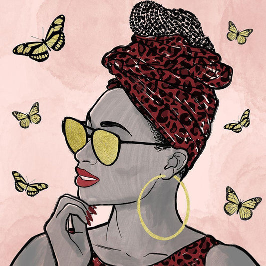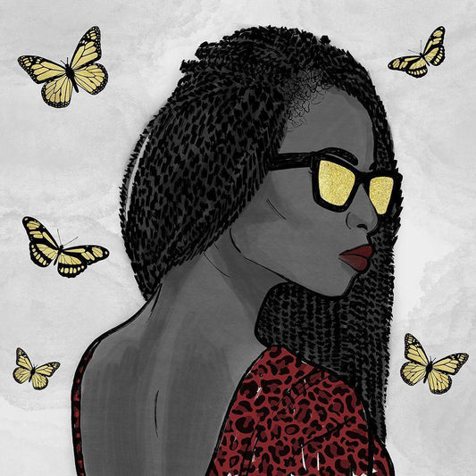 Crimson Leopard And Butterfly Fashion 2 Black Modern Wood Framed Art Print by Prime, Marcus