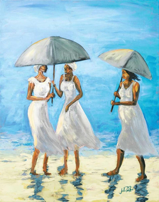 Women on Beach II White Modern Wood Framed Art Print with Double Matting by DeRice, Julie