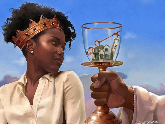 Crown Me Lord – Woman White Modern Wood Framed Art Print with Double Matting by Muhammad, Salaam