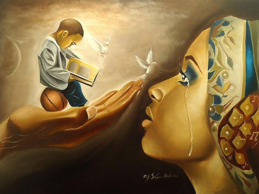 Mother Behold Your Child White Modern Wood Framed Art Print with Double Matting by Muhammad, Salaam
