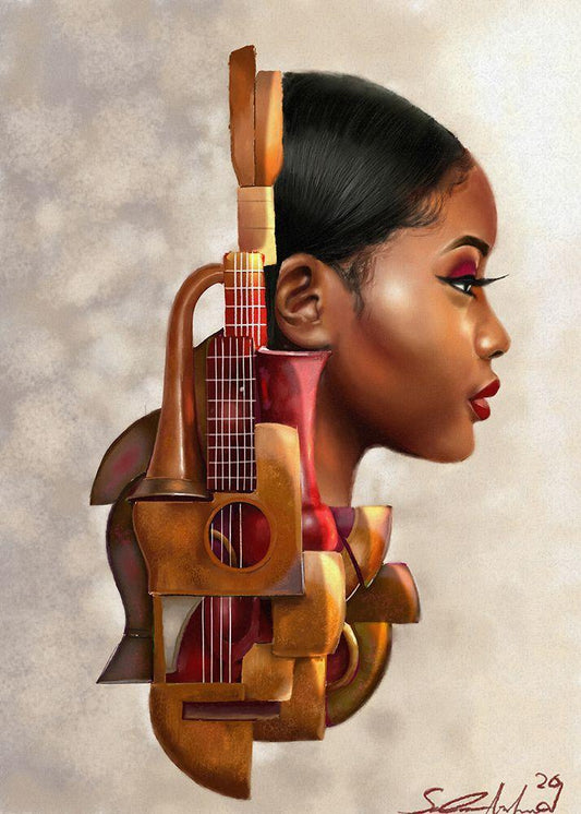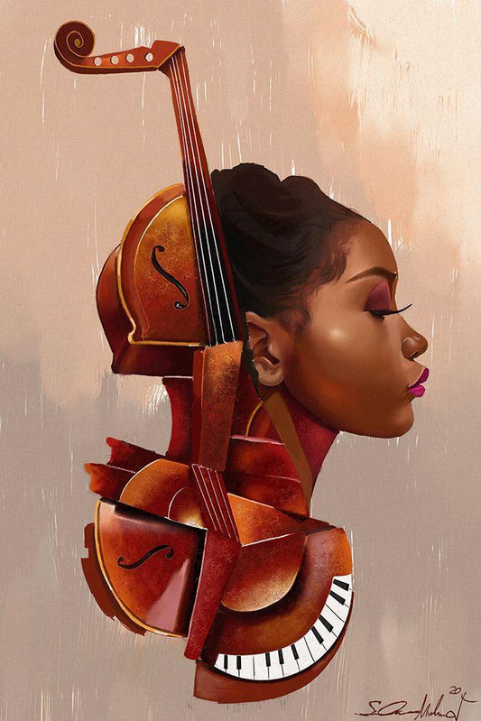Mahogany Strings White Modern Wood Framed Art Print with Double Matting by Muhammad, Salaam