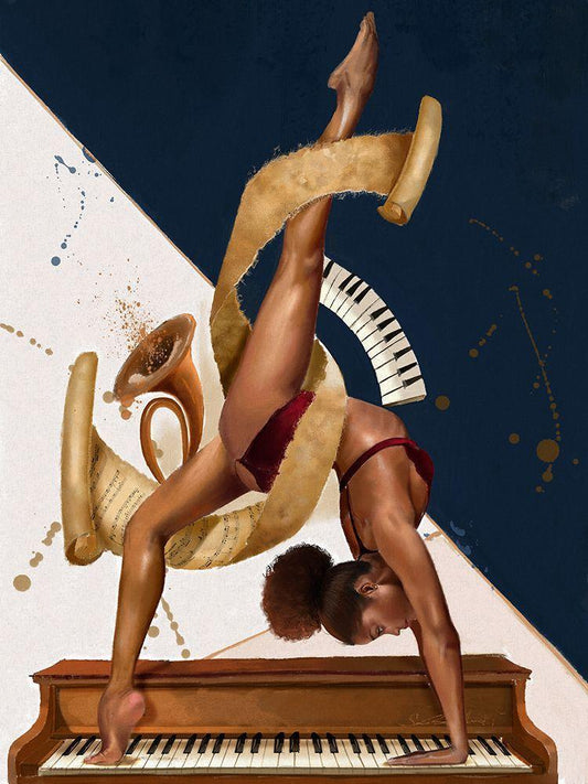 Balletic Tune White Modern Wood Framed Art Print with Double Matting by Muhammad, Salaam