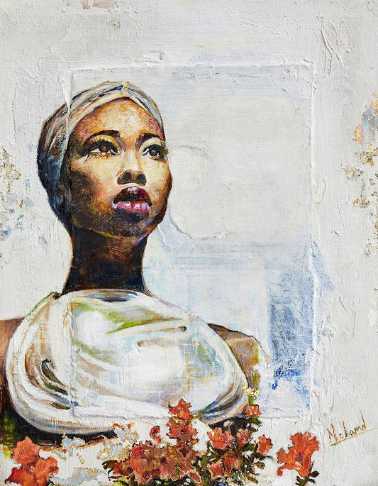 Tribal Woman White Modern Wood Framed Art Print with Double Matting by Design Fabrikken