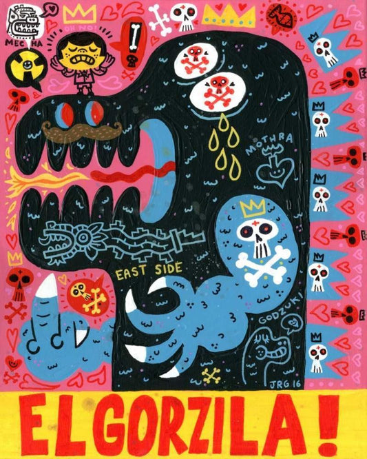 Monstro White Modern Wood Framed Art Print with Double Matting by Gutierrez, Jorge R.