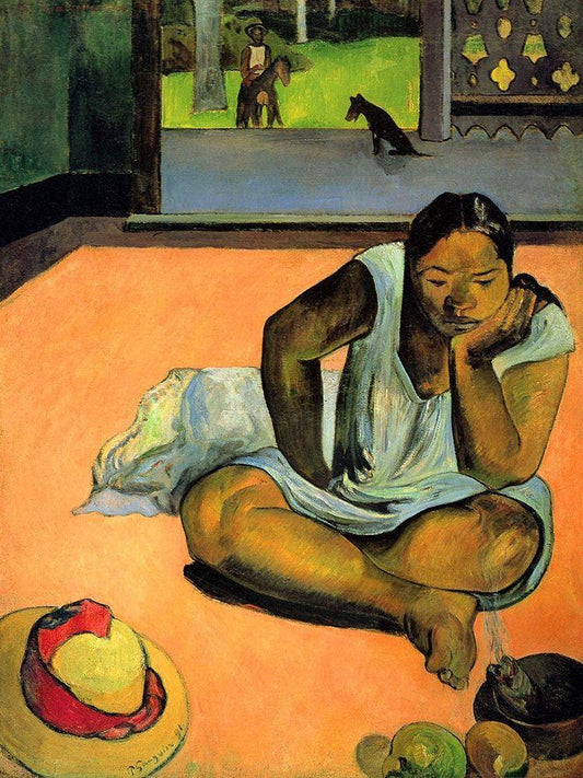 La Boudeuse (Te Faaturuma) White Modern Wood Framed Art Print with Double Matting by Gauguin, Paul