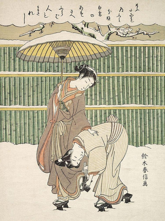 Untitled White Modern Wood Framed Art Print with Double Matting by Harunobu, Suzuki