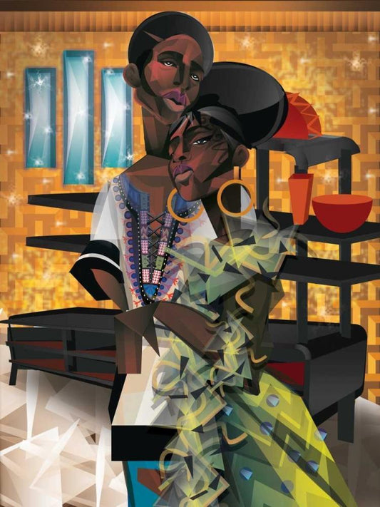 Two Women White Modern Wood Framed Art Print with Double Matting by Campbell, Jaleel