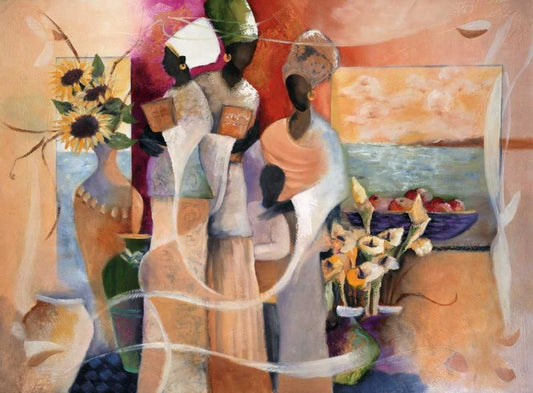 African Mother and Baby White Modern Wood Framed Art Print with Double Matting by Adams, Tamara