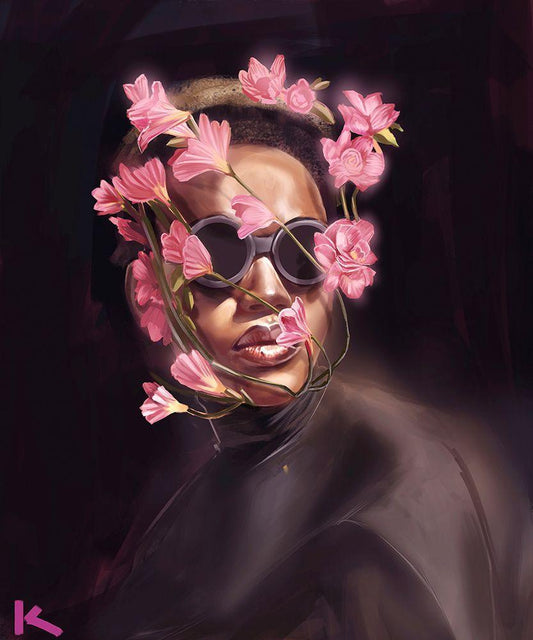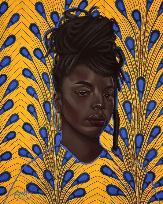 Dreads White Modern Wood Framed Art Print with Double Matting by Adeleke, Adekunle