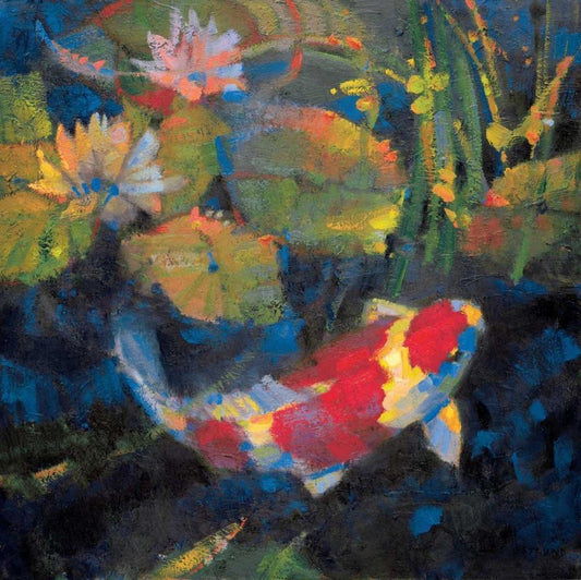Lucky Koi II White Modern Wood Framed Art Print with Double Matting by Venter, Tandi
