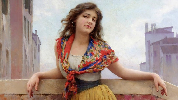 The Flirtation 20x24 Black Modern Wood Framed Art Print Poster by Blaas, Eugene de