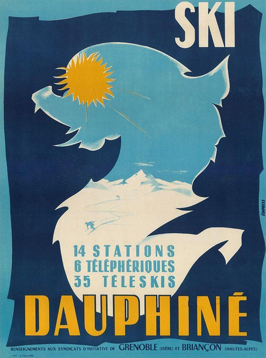 Ski Dauphine Black Ornate Wood Framed Art Print with Double Matting by Vintage Apple Collection