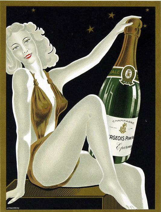 French Champagne Black Ornate Wood Framed Art Print with Double Matting by Vintage Apple Collection