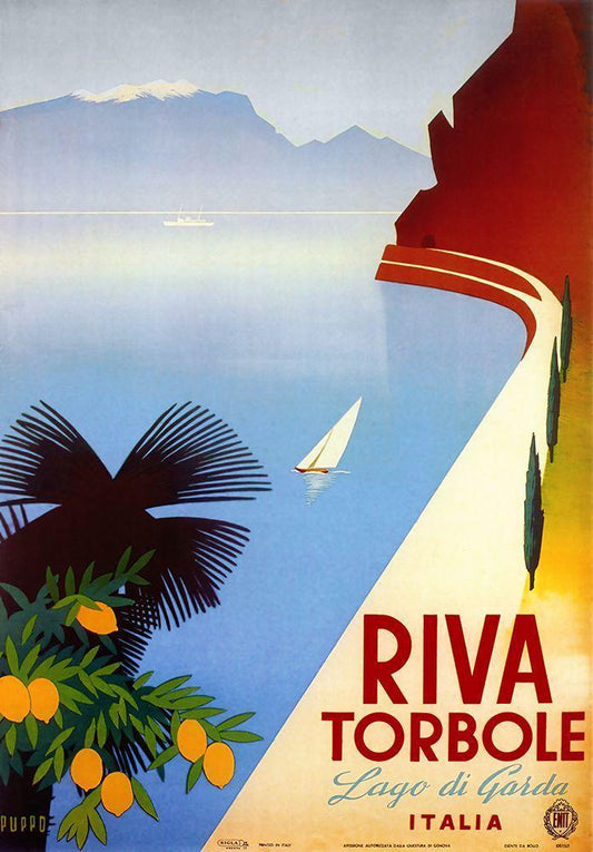 Riva Torbole Black Ornate Wood Framed Art Print with Double Matting by Vintage Apple Collection