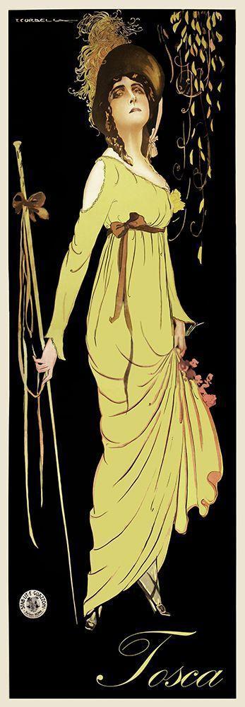 Tosca Archival 1918 Rare Black Ornate Wood Framed Art Print with Double Matting by Vintage Apple Collection