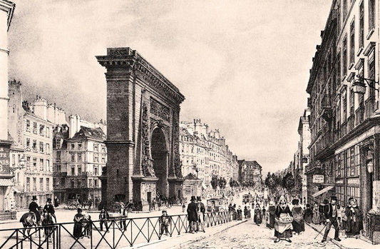 Paris Port Saint Denis 1835 Black Ornate Wood Framed Art Print with Double Matting by Vintage Apple Collection