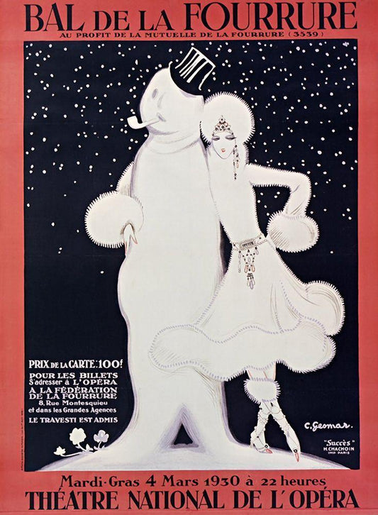 Bal de La Fourrure Black Ornate Wood Framed Art Print with Double Matting by Vintage Apple Collection