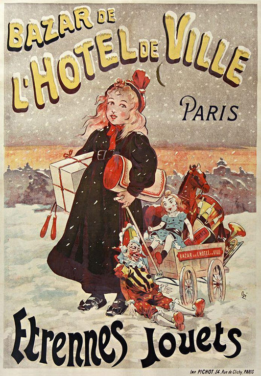 Bazar de L’Hotel de Ville Black Ornate Wood Framed Art Print with Double Matting by Vintage Apple Collection