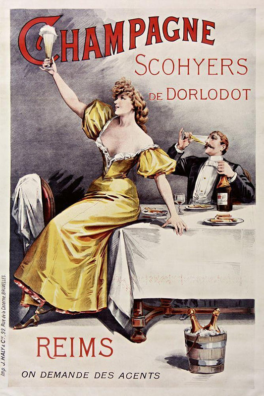 Champagne Scohyers Black Ornate Wood Framed Art Print with Double Matting by Vintage Apple Collection