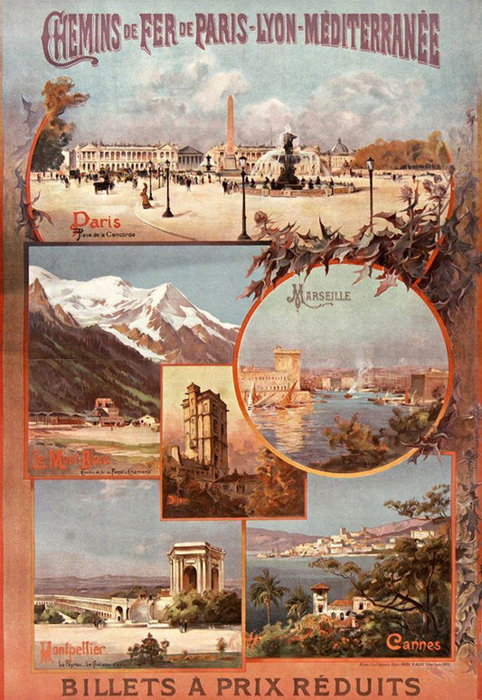 Chemins de Fer de Paris Lyon Black Ornate Wood Framed Art Print with Double Matting by Vintage Apple Collection