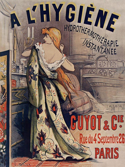 L’Hygiéne Hydrothermothérapie Black Ornate Wood Framed Art Print with Double Matting by Vintage Apple Collection