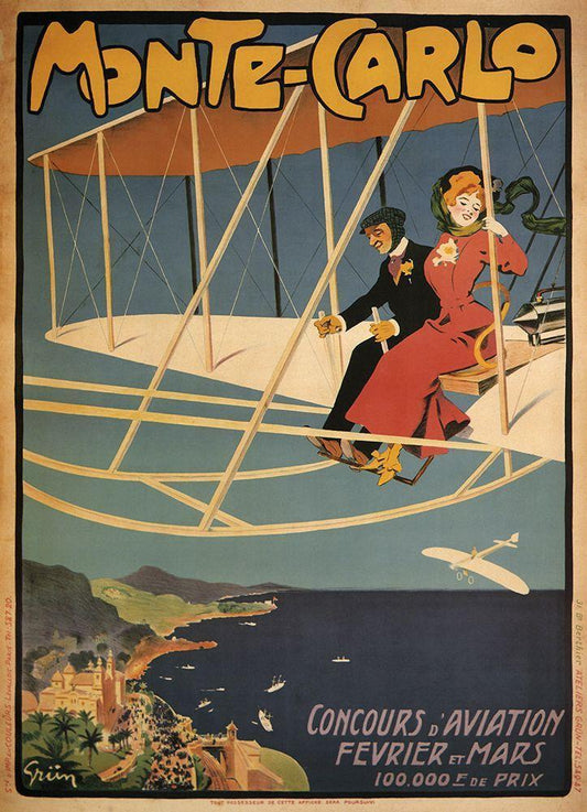 Monte Carlo Aviation Tours Black Ornate Wood Framed Art Print with Double Matting by Vintage Apple Collection
