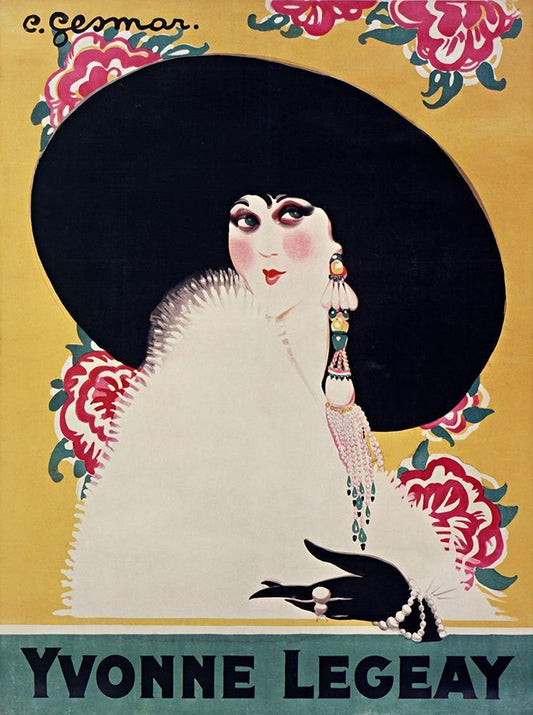 Yvonne Legeay Black Ornate Wood Framed Art Print with Double Matting by Vintage Apple Collection
