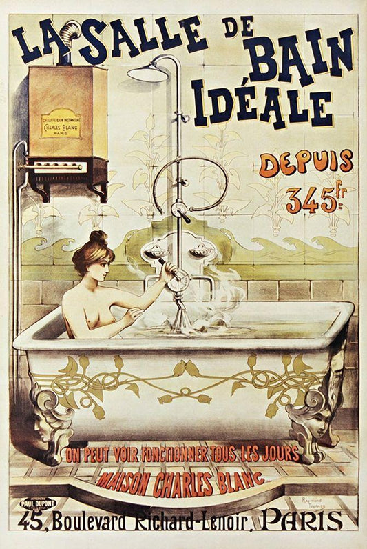 Salle de Bain Black Ornate Wood Framed Art Print with Double Matting by Vintage Apple Collection
