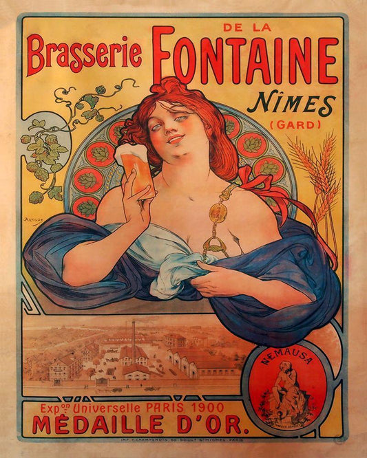 Biere de Paris Black Ornate Wood Framed Art Print with Double Matting by Vintage Apple Collection
