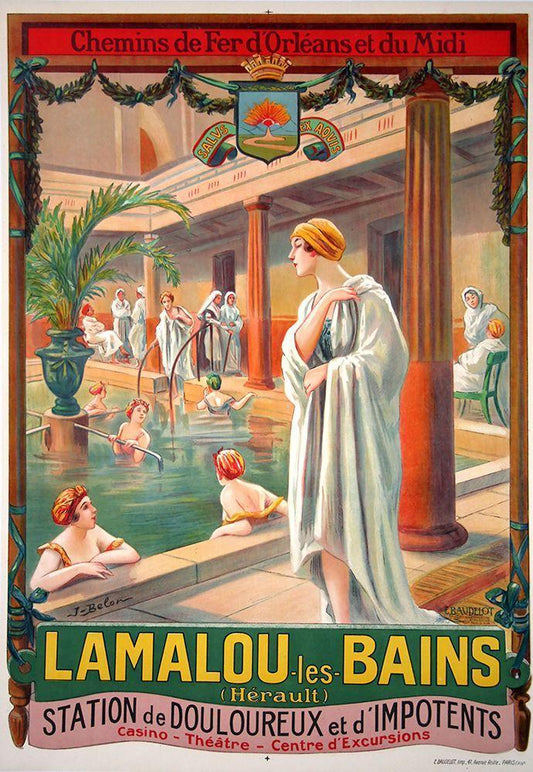 Lamalou Les Bains Black Ornate Wood Framed Art Print with Double Matting by Vintage Apple Collection