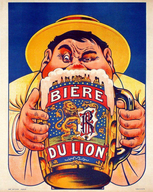 Biere du Lion Black Ornate Wood Framed Art Print with Double Matting by Vintage Apple Collection