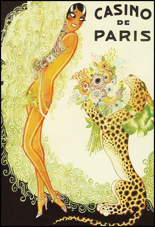 Casino de Paris-Leopard Black Ornate Wood Framed Art Print with Double Matting by Vintage Apple Collection