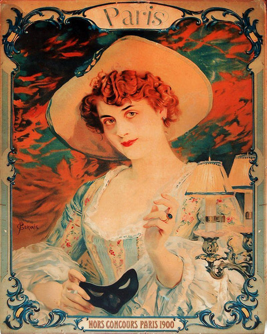Paris Mardis Gras Black Ornate Wood Framed Art Print with Double Matting by Vintage Apple Collection