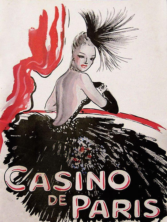 Casino de Paris Red and Black Black Ornate Wood Framed Art Print with Double Matting by Vintage Apple Collection