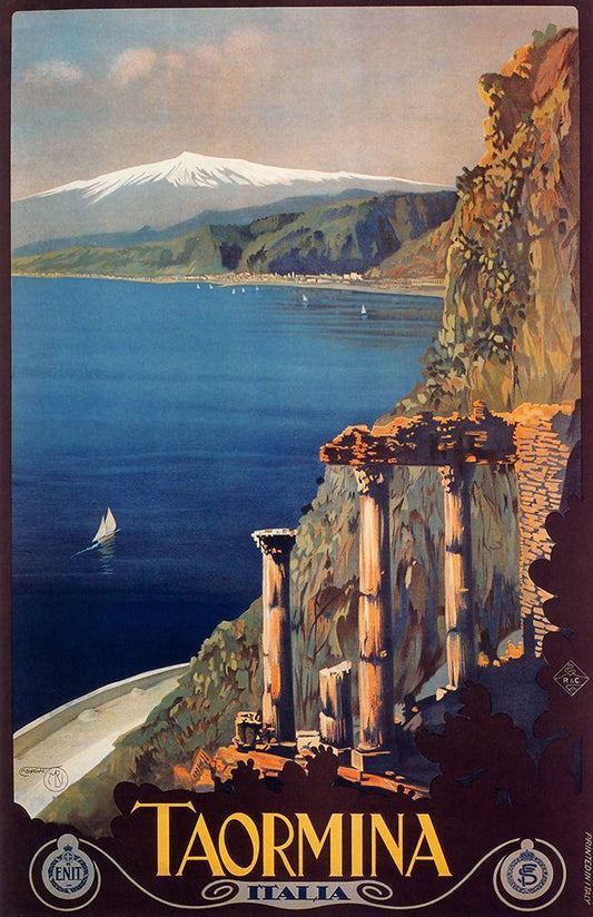 Taormina-Sicily Black Ornate Wood Framed Art Print with Double Matting by Vintage Apple Collection