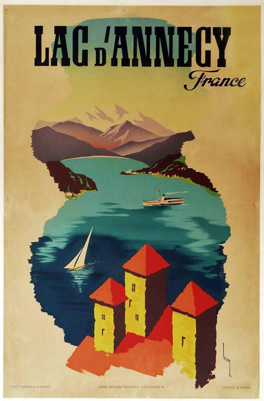 Lac Annecy of France Black Ornate Wood Framed Art Print with Double Matting by Vintage Apple Collection