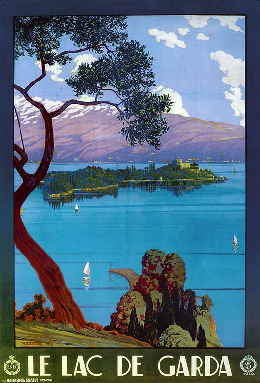 Lake Garda Black Ornate Wood Framed Art Print with Double Matting by Vintage Apple Collection