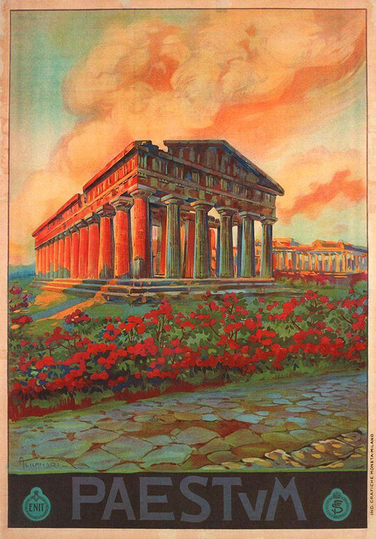Italy Paestum Black Ornate Wood Framed Art Print with Double Matting by Vintage Apple Collection