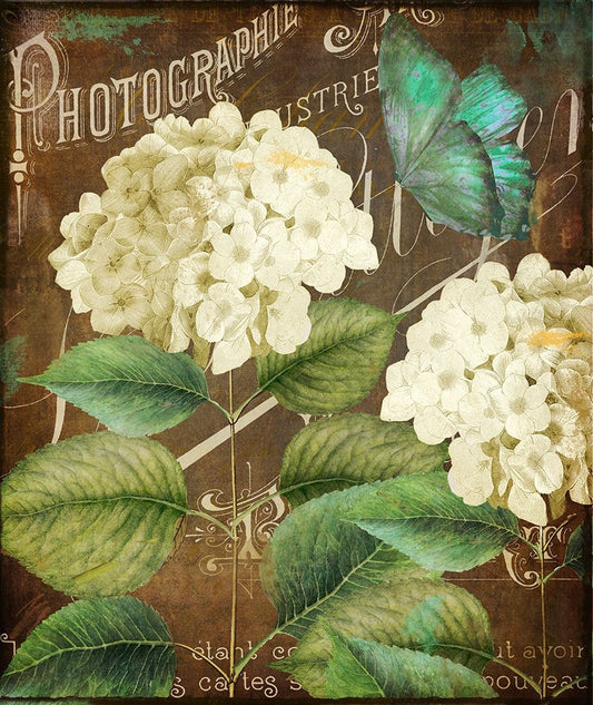 Alabaster Hydrangea Black Ornate Wood Framed Art Print with Double Matting by Sasha