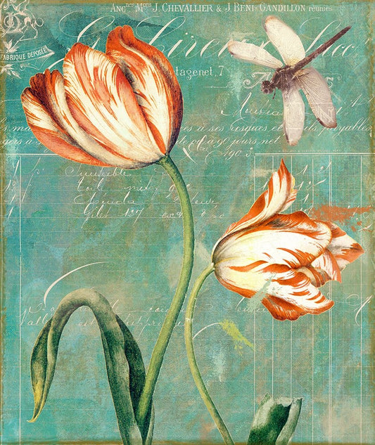 Tulips Ablaze III Black Ornate Wood Framed Art Print with Double Matting by Sasha