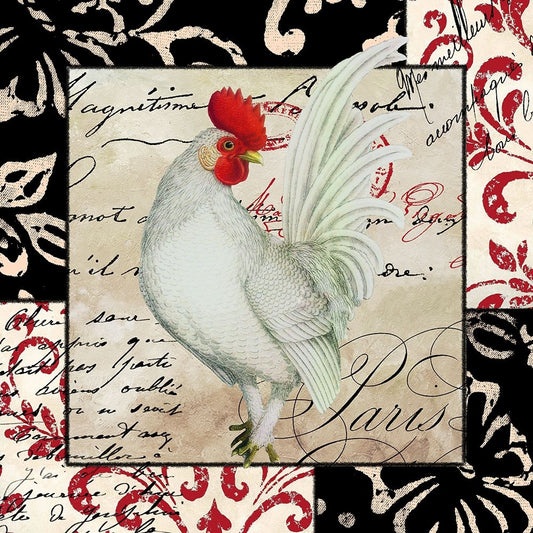 Europa White Rooster Black Ornate Wood Framed Art Print with Double Matting by Sasha