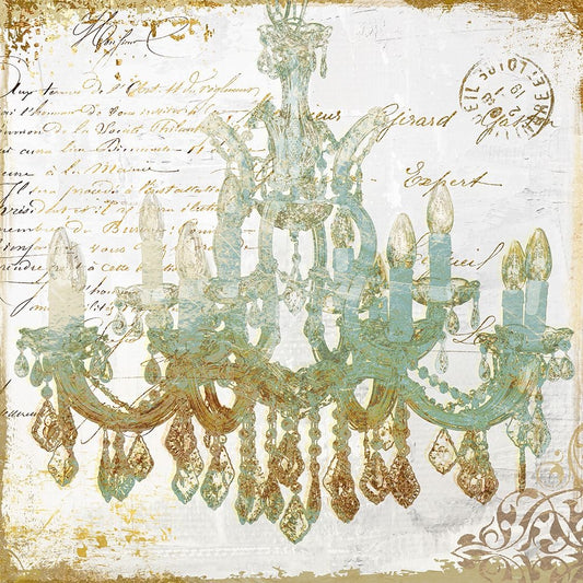 Teal And Gold Black Ornate Wood Framed Art Print with Double Matting by Sasha