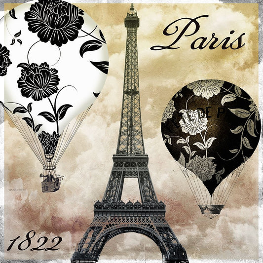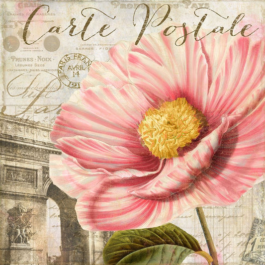 Postale Paris I Black Ornate Wood Framed Art Print with Double Matting by Sasha