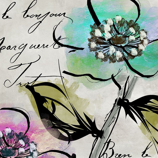 Bonjour Two Black Ornate Wood Framed Art Print with Double Matting by Sasha